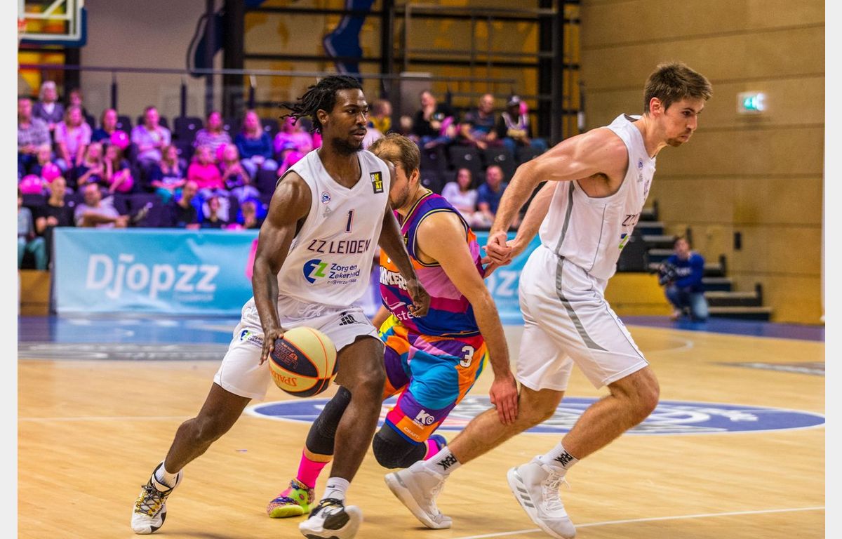 Zorg en Zekerheid Leiden heeft zondagmiddag de tweede wedstrijd in het nog prille seizoen met een nederlaag afgesloten. Zeven minuten voor tijd stond Landstede Hammers met 80-56 voor en leek de wedstrijd in Zwolle wel gespeeld. Dat was dus niet het geval. Landstede werd zes minuten zonder score gehouden, terwijl de Leidse ploeg maar liefst 25 punten op rij scoorde om met nog een minuut te spelen een 80-81 voorsprong te pakken. Het laatste schot van de wedstrijd was voor Maarten Bouwknecht, maar dat trof geen doel. Daardoor bleven de punten in Zwolle: 84-83.