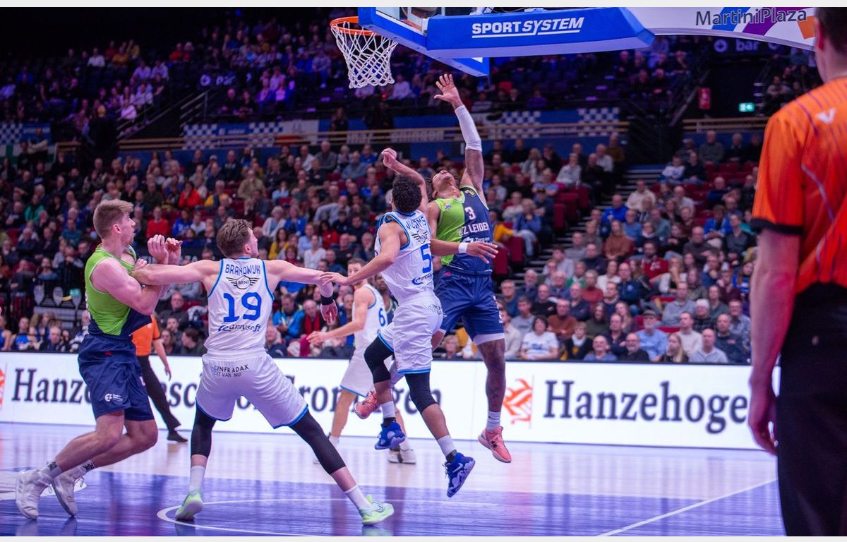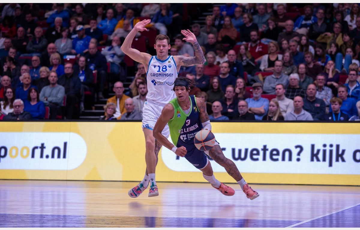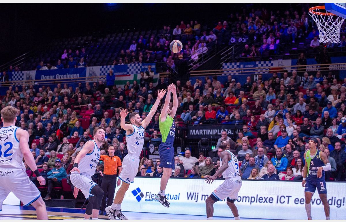 Zorg en Zekerheid Leiden heeft de altijd lastige uitwedstrijd in MartiniPlaza in winst omgezet. Met nog acht minuten te spelen, genoot Donar een 61-53 voorsprong. In de resterende speeltijd sloot de Leidse defensie, terwijl er aanvallend opeens makkelijk werd gescoord. De 1-17 eindsprint zorgde voor een 62-70 overwinning.