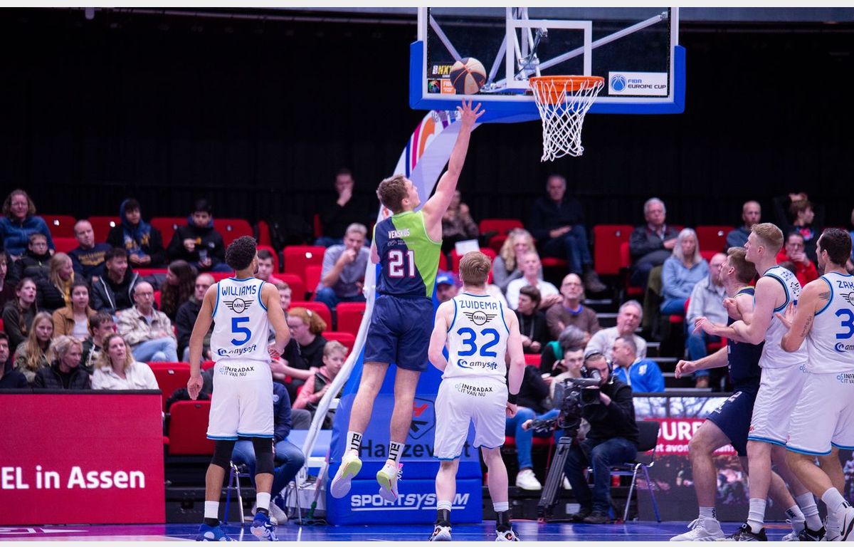 Misschien dat de Leidse formatie daarom niet echt scherp aan het duel begon, getuige vier turnovers in de eerste vier minuten. Het gaf Donar, dat na de wedstrijd op fraaie wijze afscheid nam van Thomas Koenis, de gelegenheid om weg te lopen naar een 18-9 voorsprong. Vier punten op rij van Erikas Venskus wisten de schade na 10 minuten te beperken tot vijf punten: 18-13.