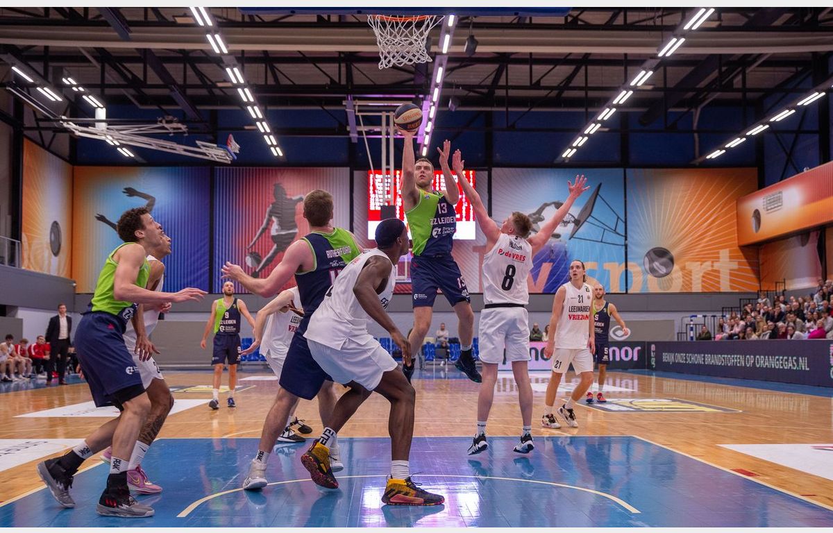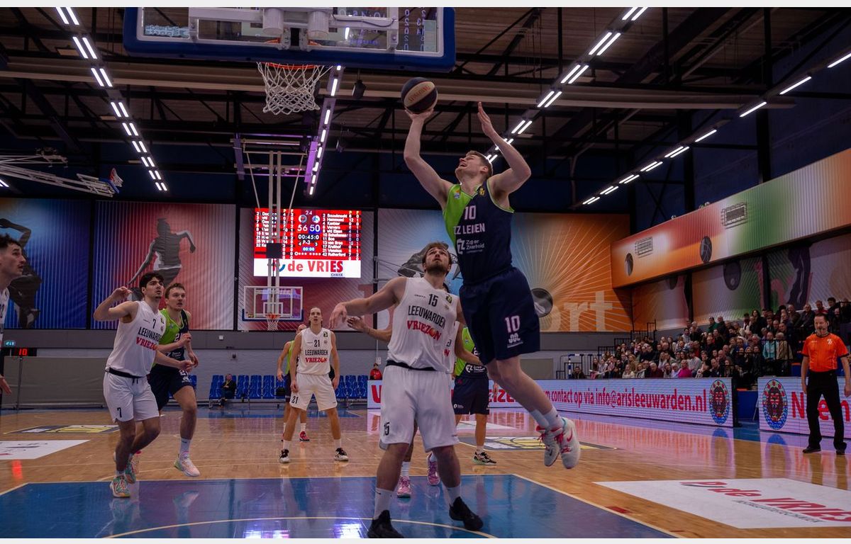 Zorg en Zekerheid Leiden heeft voor de vierde keer dit seizoen de winst gepakt tegen Aris Leeuwarden, maar makkelijk ging dat zeer zeker niet. De Leidse ploeg toonde twee gezichten. Een slordig gespeelde eerste helft leidde tot een 42-27 achterstand bij rust. Na de pauze speelde de Leidse ploeg met meer overleg en stond met name Stan van den Elzen op. Hij scoorde al zijn 15 punten in de tweede helft. Zorg en Zekerheid Leiden kon het zich veroorloven om een driepunter in de laatste seconde tegen te krijgen, want de winst was al binnen: 75-76.