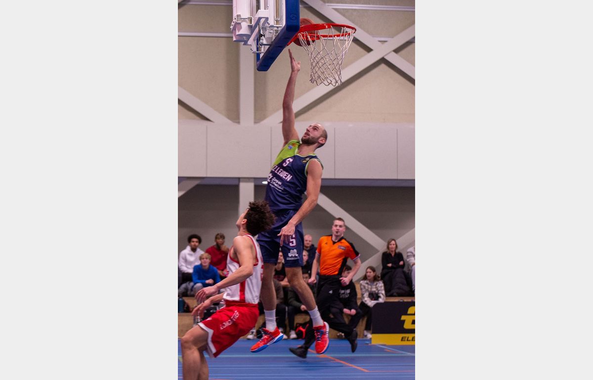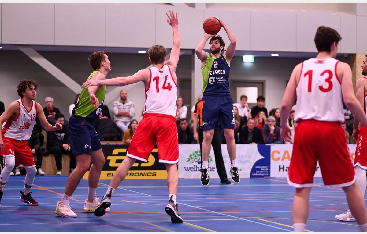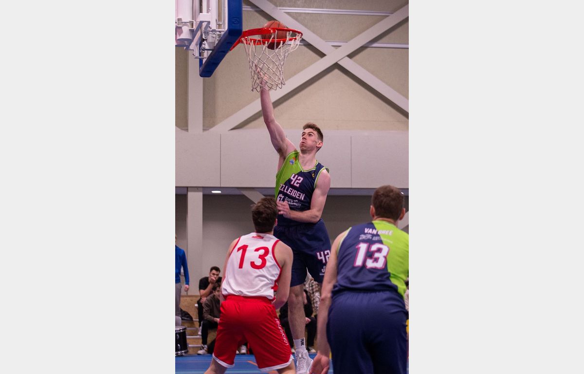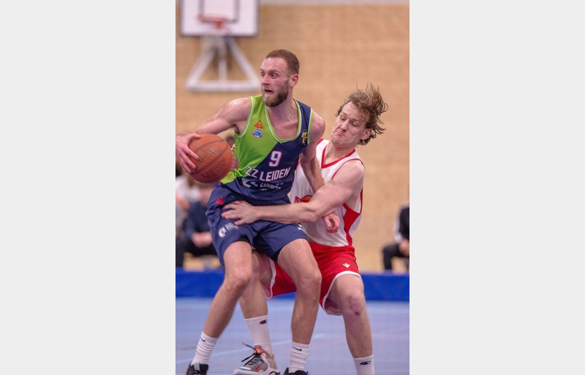 Binnen anderhalve minuut toonde Zorg en Zekerheid Leiden aan dat er een groot verschil zit tussen eerste divisie en BNXT League. Via twee scores van Thomas Rutherford en twee vrije worpen van Marijn Ververs stond het meteen al 0-6. Miles de Koning was de eerste speler van de thuisploeg die tot scoren kwam. Kort daarop volgde twee Leidse dunks. Dat Luuk van Bree kan dunken, hebben we wel vaker gezien. De tweede dunk (voor een stand van 4-15) kwam van Marijn Ververs. Na afloop gaf hij aan dat hij op de training al wel vaker gedunkt heeft, maar dit was de eerste keer in een wedstrijd.