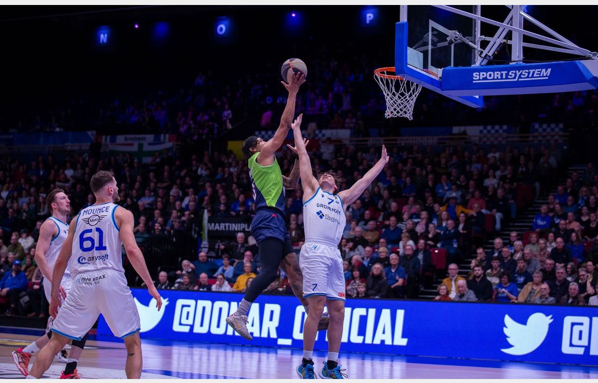 Dat leidde er overigens niet toe dat Zorg en Zekerheid Leiden meteen ook maar de heenwedstrijd van de halve finale van de Basketball Cup in winst wist om te zetten. Daarvoor biedt het enigszins vernieuwde Donar genoeg tegenstand. Zorg en Zekerheid Leiden opende na een steal van Marijn Ververs binnen elf seconden met een dunk van Luuk van Bree. Donar was niet onder de indruk en met Clay Mounce (22 punten) achter het kanon namen de Groningers een voorsprong. Die verdween halverwege het eerste kwart toen Worthy de Jong bij zijn eerste balbezit meteen een driepunter door de ring schoot: 8-11. Donar en Zorg en Zekerheid Leiden gaven elkaar weinig ruimte. Een score van Lucas Kruithof zorgde voor een 16-18 stand na 10 minuten spelen.