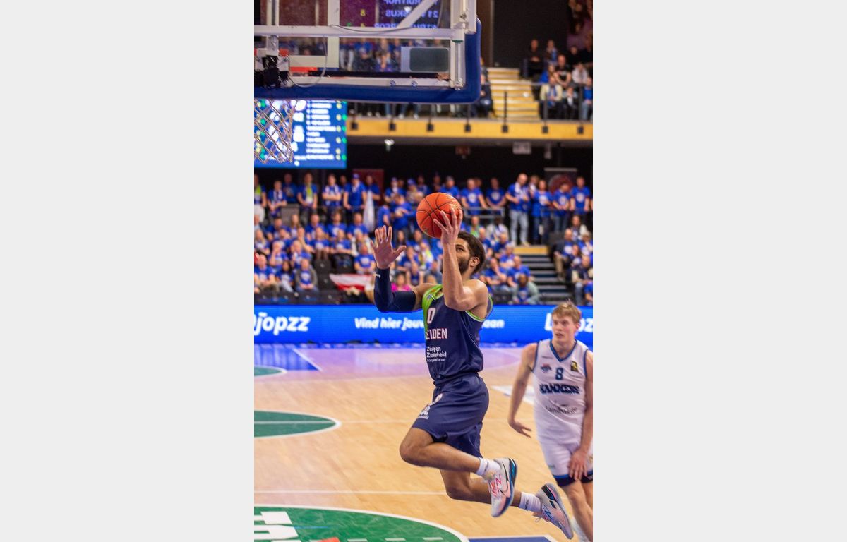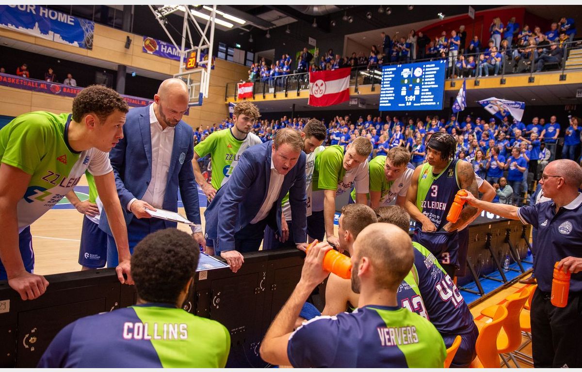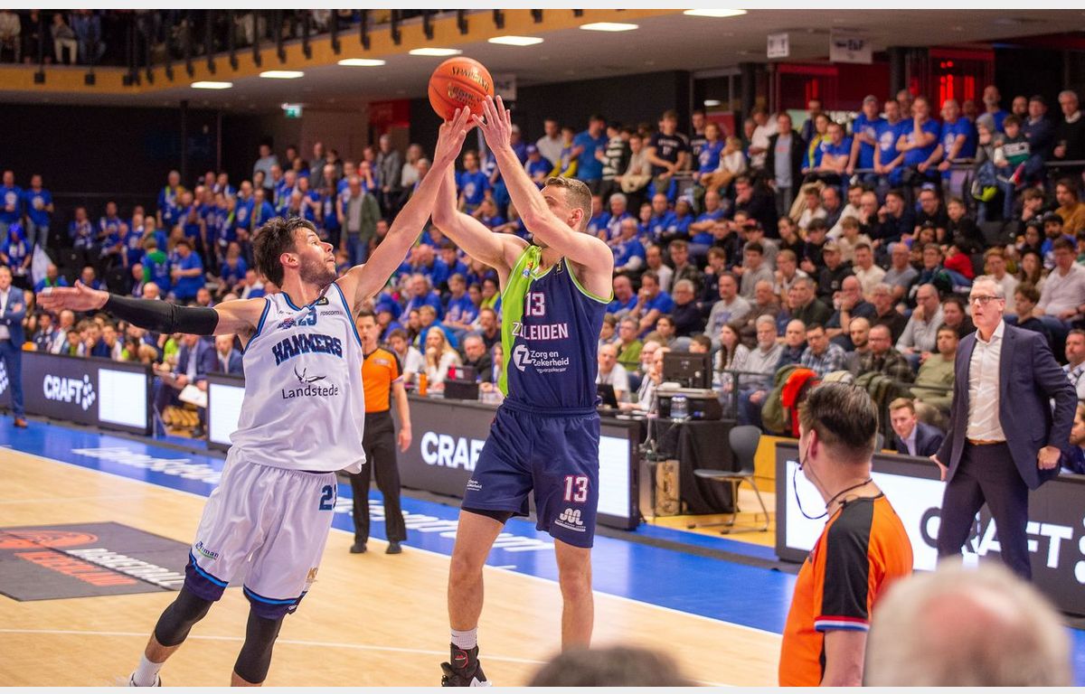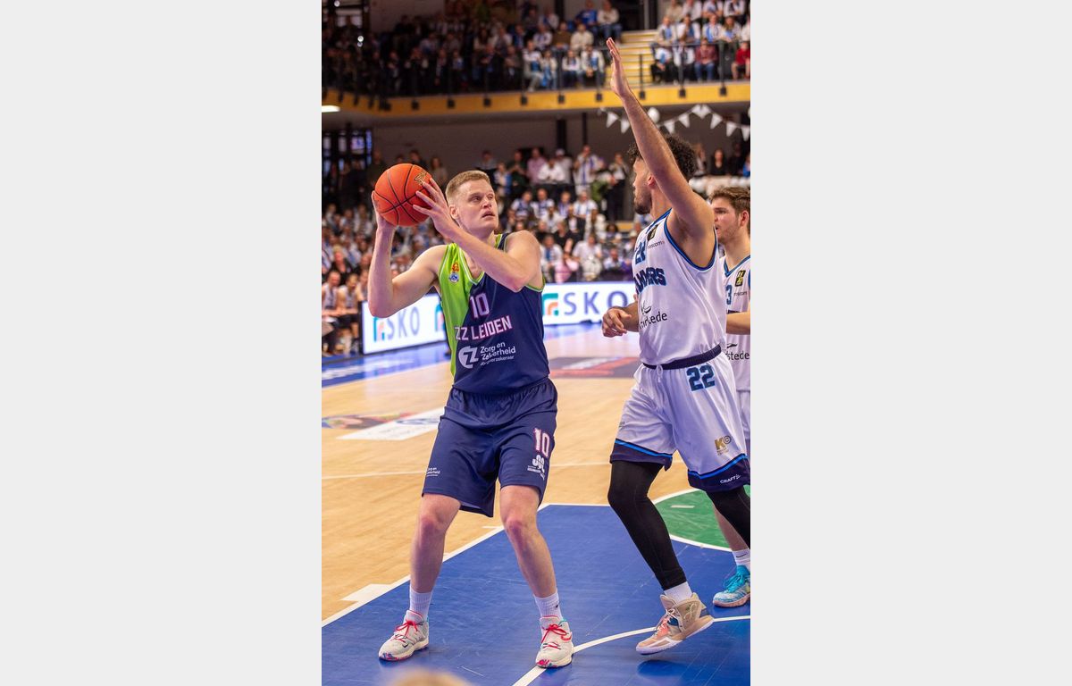 In Mechelen bleek dat Zorg en Zekerheid Leiden het in de slotfase moeilijk heeft om een wedstrijd over de streep te trekken. Wel zorgde een driepunter van Van Bree eerst nog voor een 59-70 stand met nog iets meer dan twee minuten te gaan. Kat in het bakkie, zou je denken, maar een kat in het nauw (Landstede) maakt rare sprongen. Driepunters van Duje Dukan (twee keer) en Felix Terins, gecombineerd met Leidse turnovers, brachten de stand 24 seconden van het einde op 69-72.