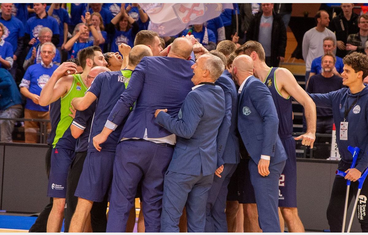 Landstede zette Bouwknecht op de lijn. Normaal gesproken een zekerheidje, maar in de Zwolse heksenketel miste hij beide vrije worpen. Tien seconden voor tijd kreeg Terins twee vrije worpen. De eerste was raak (70-72), de tweede werd bewust misgeschoten. Vanuit de rebound kon Terins nog aanleggen voor een driepunter, maar dat schot trof geen doel. Wel was de aanvallende rebound wederom voor Landstede, maar de Zwolse ploeg gooide de bal het veld uit. Dit keer mocht Collins vanaf de lijn aanleggen. Eerste nis, tweede ook mis, maar Collins pakte à a Monta McGhee in 2011 wel de rebound en daarmee was de wedstrijd beslist: 70-72. Voor de vierde keer was het feest voor de Leidse formatie.