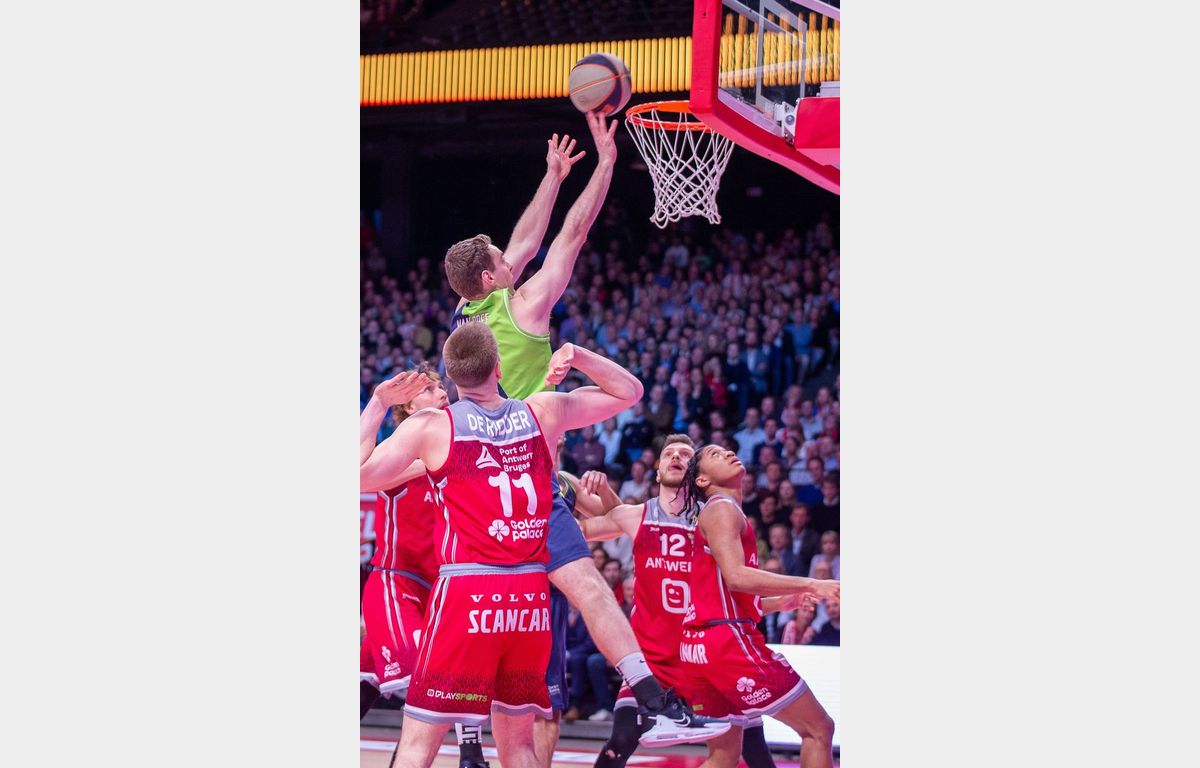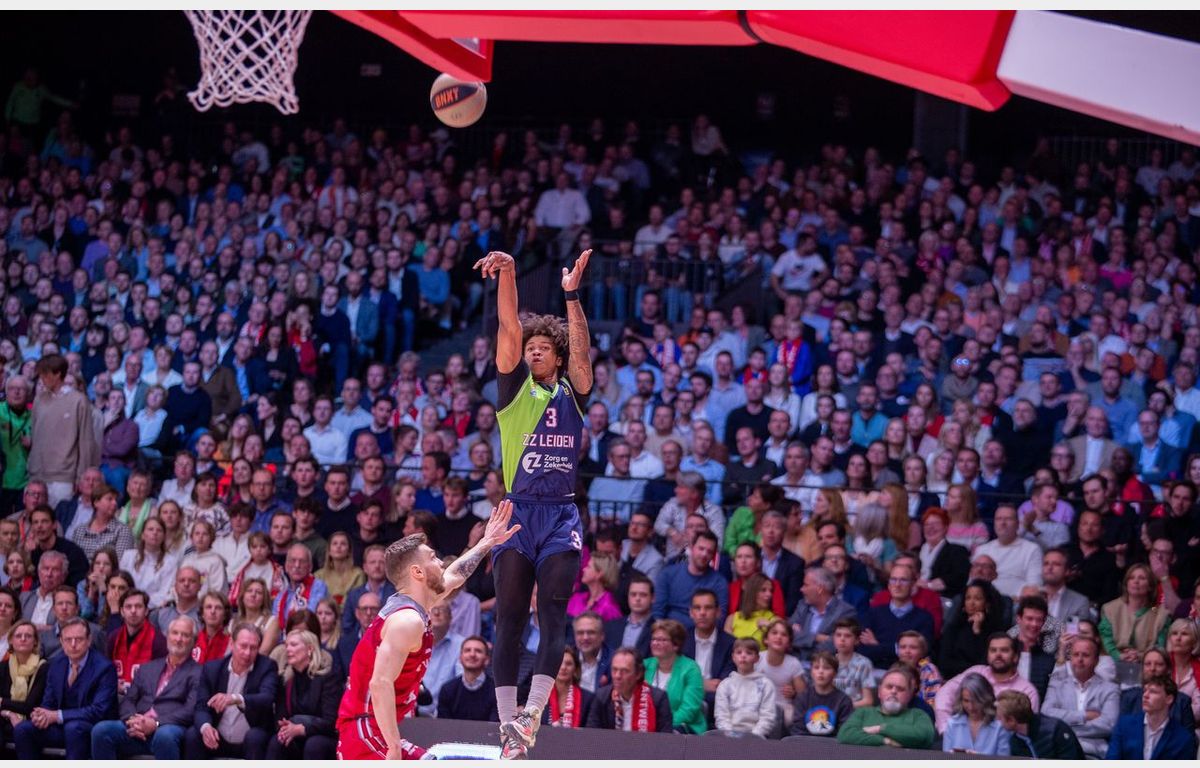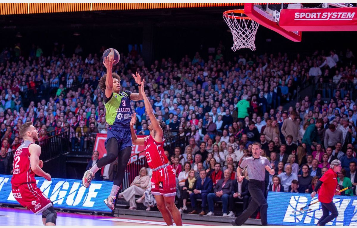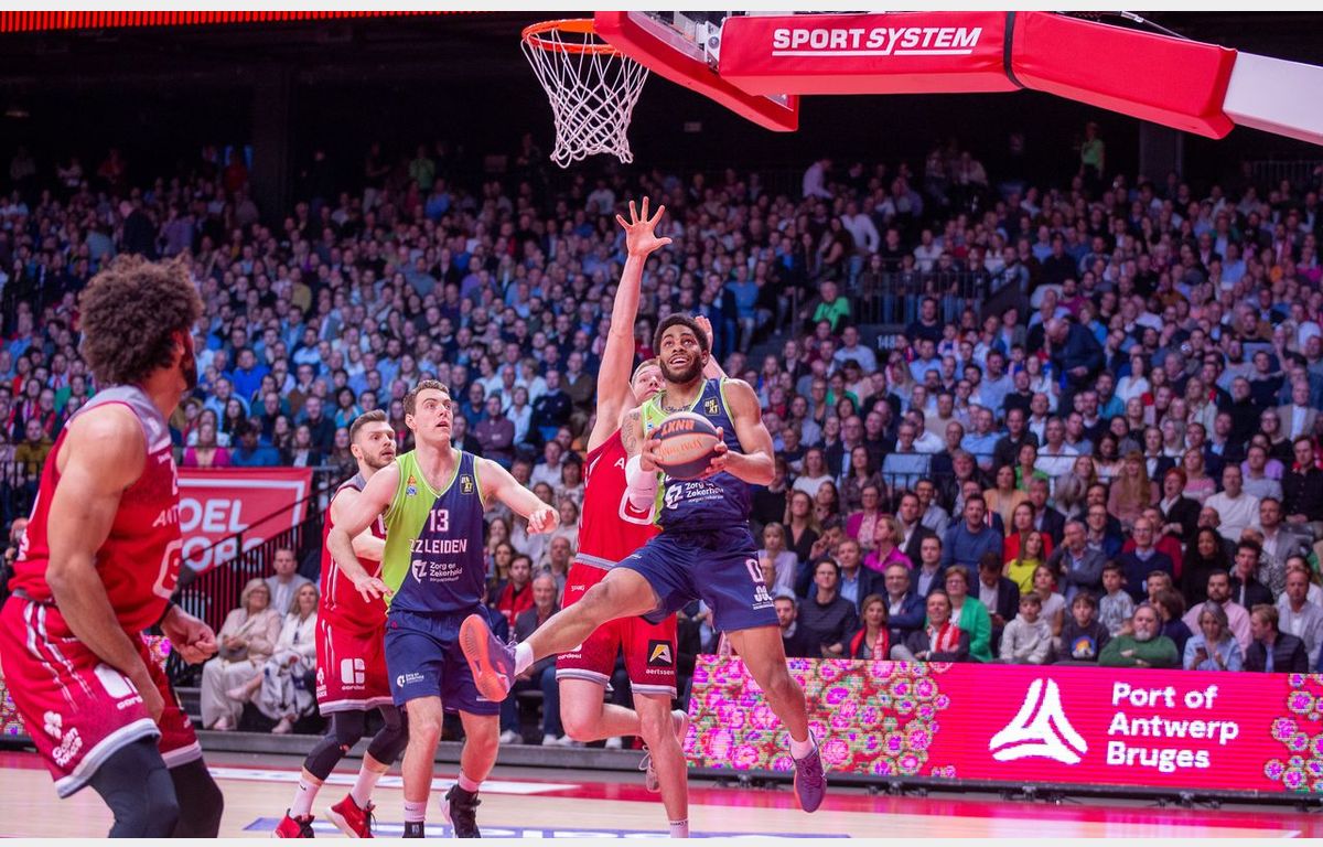 Zorg en Zekerheid Leiden is er voor 12.125 toeschouwers niet in geslaagd Telenet Giants Antwerp van de negende overwinning op rij in de Elite Gold af te houden. In de avond die in het teken van The Night of the Giants stond, werd het na een ruststand van 43-30 uiteindelijk 76-64 voor de Belgische bekerwinnaar.
