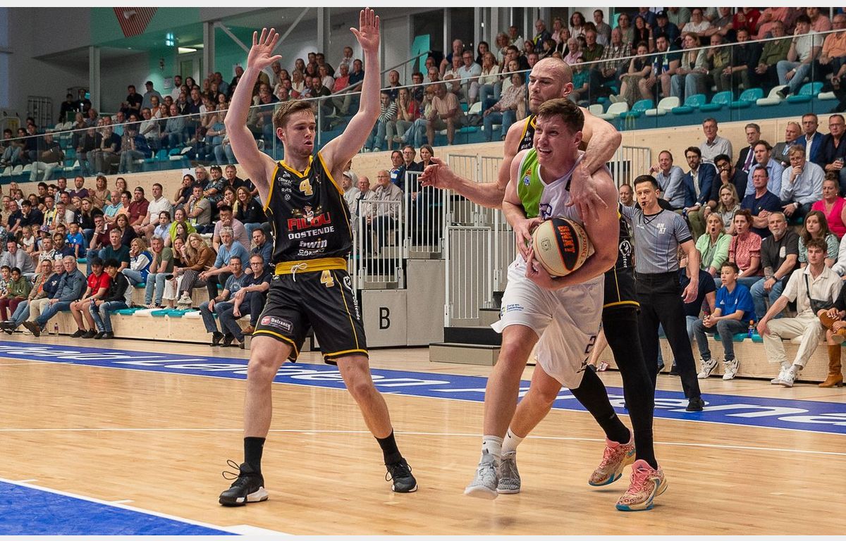 Zorg en Zekerheid Leiden kwam goed uit de kleedkamer. Roeland Schaftenaar scoorde twee keer onder de borden, waarna Van Bree een vrije worp benutte voor een technische fout van Dario Gjergja, de coach van Oostende: 43-48. Jefferson kwam voor Oostende door met een driepunter, maar Jones volgde dat voorbeeld: 46-51. Via driepunters van Pierre-Antoine Gillet en Ahmad liep de Belgische kampioen weer uit naar een voorsprong van 10 punten: 48-58. Nog even kwam de Leidse ploeg na een rake driepunter van Jones binnen de 10 punten: 53-62, maar uiteindelijk werd het derde kwart afgesloten bij 53-68.
