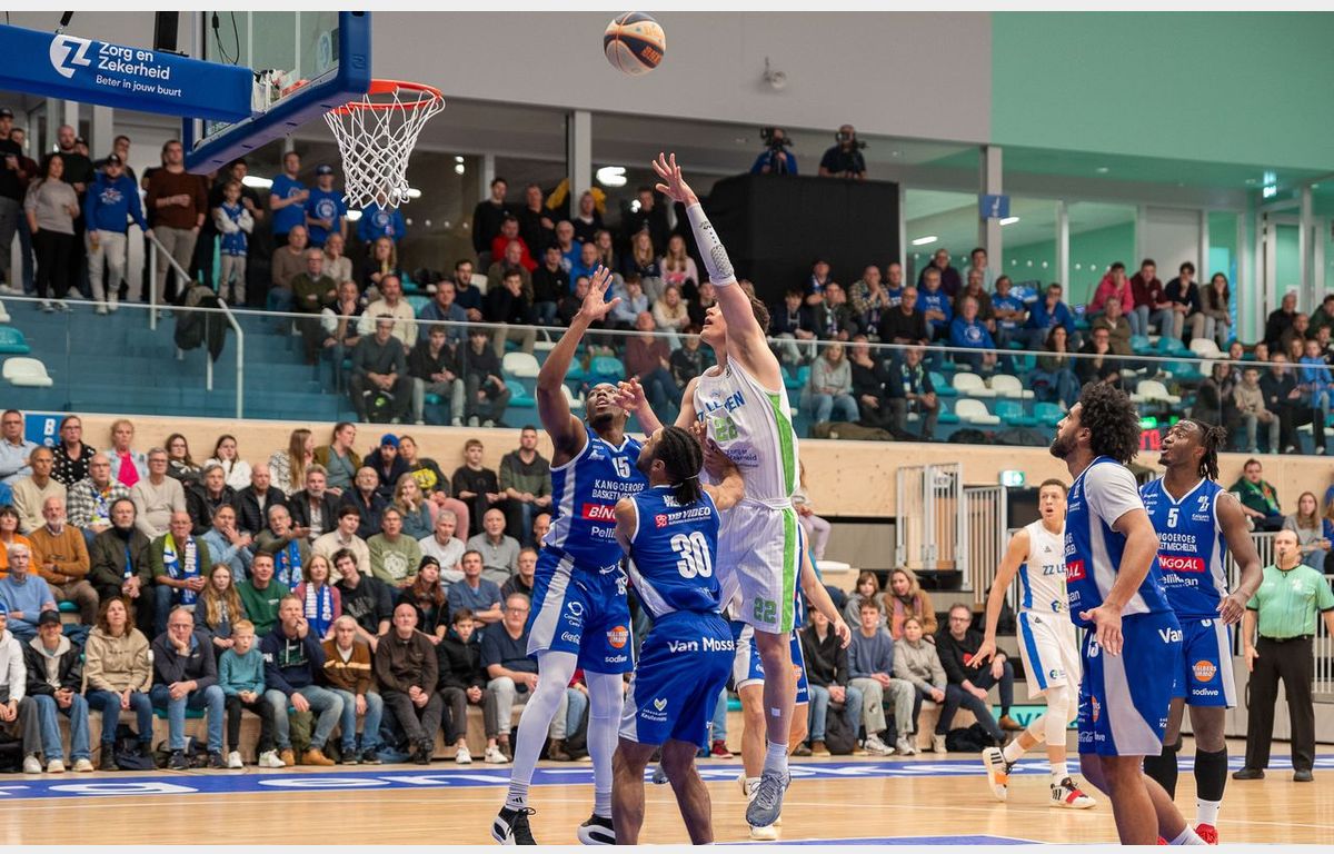Zorg en Zekerheid Leiden is er niet in geslaagd om Kangoeroes Basket Mechelen te verslaan. De Leidse ploeg verloor de strijd eigenlijk al in het eerste kwart. Mechelen won dat kwart door een sterke verdediging met 8-19. Zorg en Zekerheid Leiden kwam in het derde kwart nog terug tot acht punten, maar daar bleef het bij: 69-81.