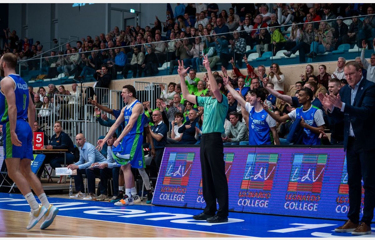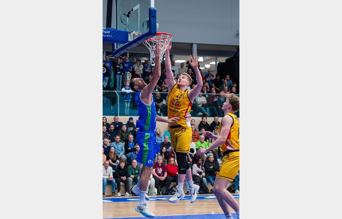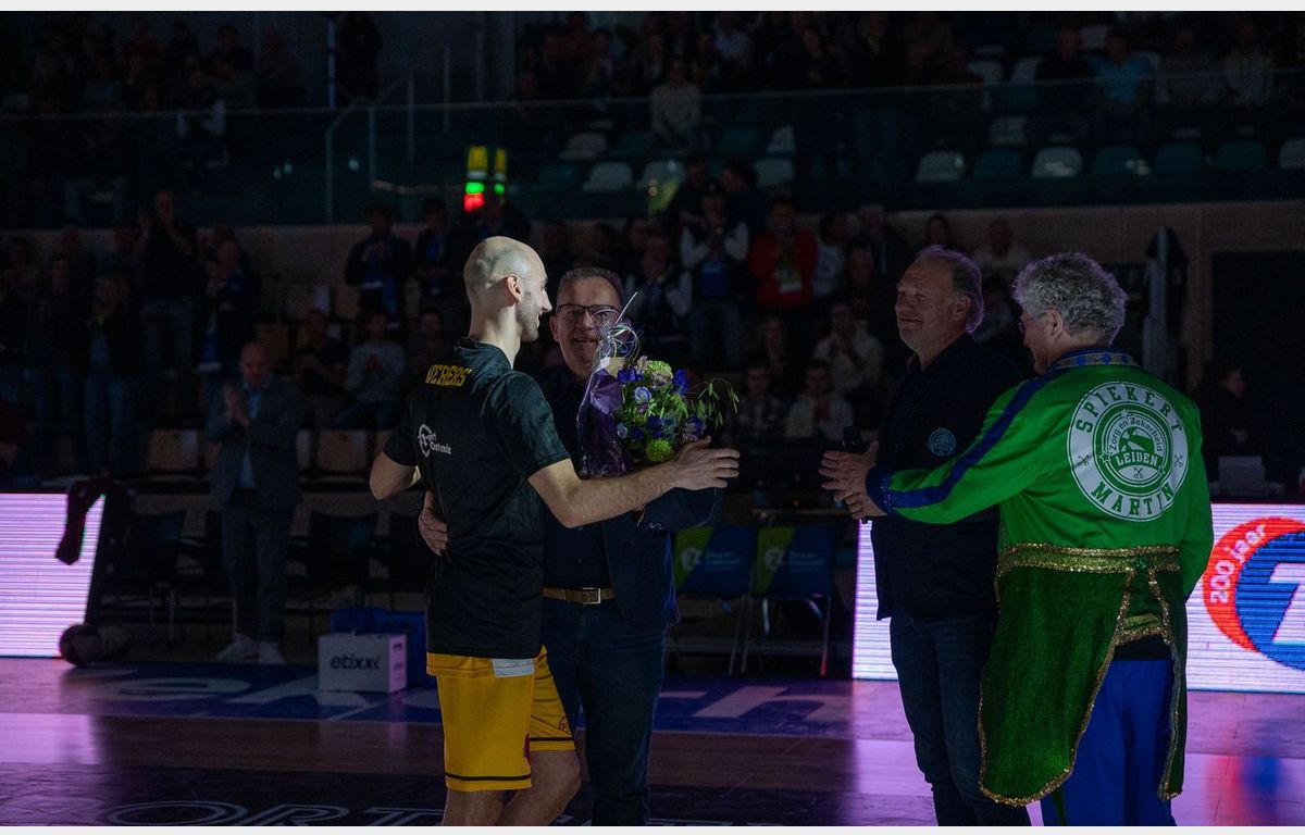 Zorg en Zekerheid Leiden heeft zaterdagavond in een volle hal een prachtige overwinning geboekt. Filou Oostende werd na een ruststand van 41-36 met 87-74 verslagen. Daarmee is de Belgische tegenstrever de koppositie in de BNXT League kwijtgeraakt. Voor Marijn Ververs was zijn terugkeer in Leiden dus geen succes. Niettemin kreeg hij een mooi eerbetoon voor aanvang van het duel.