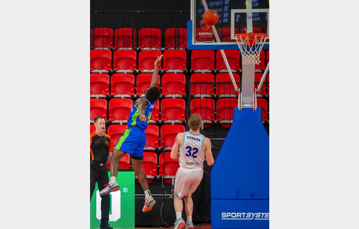 Zorg en Zekerheid Leiden is er niet in geslaagd om de finale van de TOTO Basketball Cup te bereiken. In de eerste helft leek er niets aan de hand voor de Leidse ploeg, die een 25-36 voorsprong mee de rust in nam. Na de pauze speelde Donar beter. De Leidse verdediging kreeg geen vat op de razendsnelle en met scherp schietende Tavian Dunn-Martin (30 punten, 10 rebounds en 6 assists). Via 50-50 na drie kwarten werd het een verdiende 77-69 overwinning voor Donar.