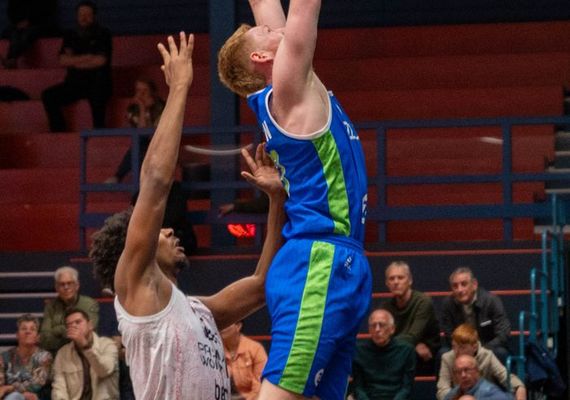 Meteen aan het begin van het tweede kwart was ook Dimitri Maconda succesvol van achter de driepuntslijn. Ook Roeland Schaftenaar, die veel minuten moest maken vanwege de foutenlast van Robert, liet zich van zijn goede kant zien. Halverwege de wedstrijd stond de routinier al op 8 punten en 7 rebounds. Met een stand van 29-48 gingen beide ploegen rusten.