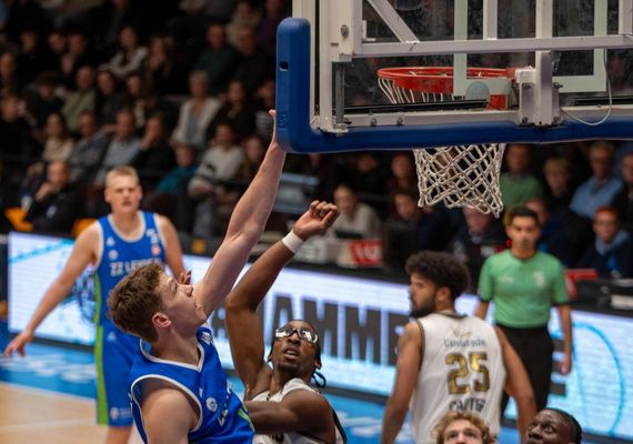 Zorg en Zekerheid Leiden heeft na drie nederlagen op rij in uitwedstrijden eindelijk weer een uitwedstrijd in winst weten om te zetten. In Zwolle werd een dapper strijdend Landstede Hammers met 81-90 verslagen. ZZ Leiden liet het wel spannend worden, maar in de slotfase liet het Leidse team zich niet verrassen.