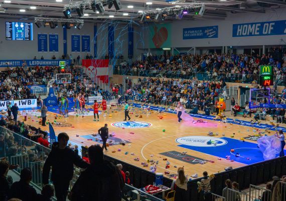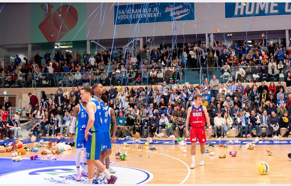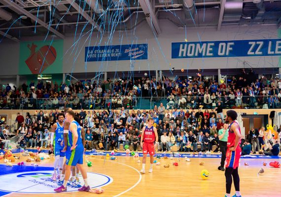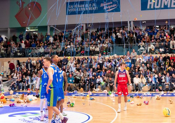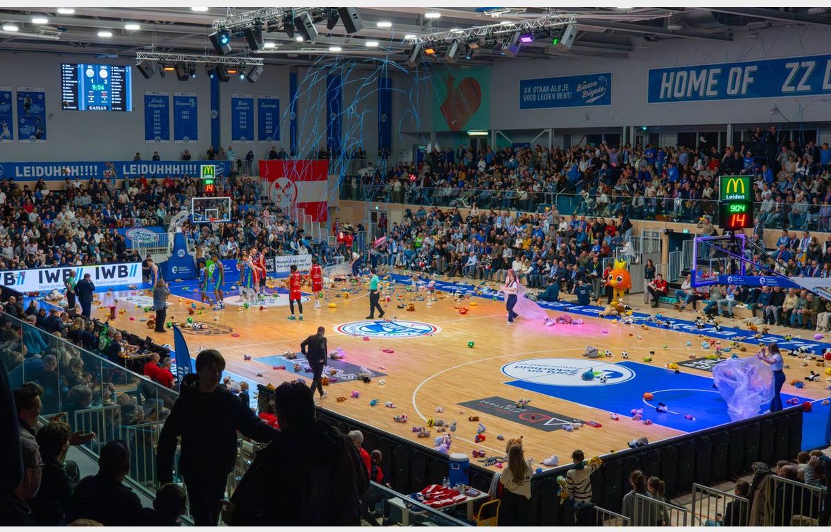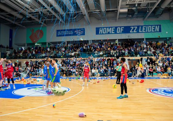 Arunas Mikalauskas, een van de drie spelers in Bossche dienst met een Leids verleden, opende de score in een kolkende hal. Na de eerst rake vrije worp van Tyreek Scott-Grayson vond de Teddy Bear Toss plaats. Vele knuffels werden vanaf de tribunes het veld naar het veld gegooid. De knuffels zullen in het nieuwe jaar uitgedeeld worden aan zieke kinderen in het Willem-Alexander Kinderziekenhuis.