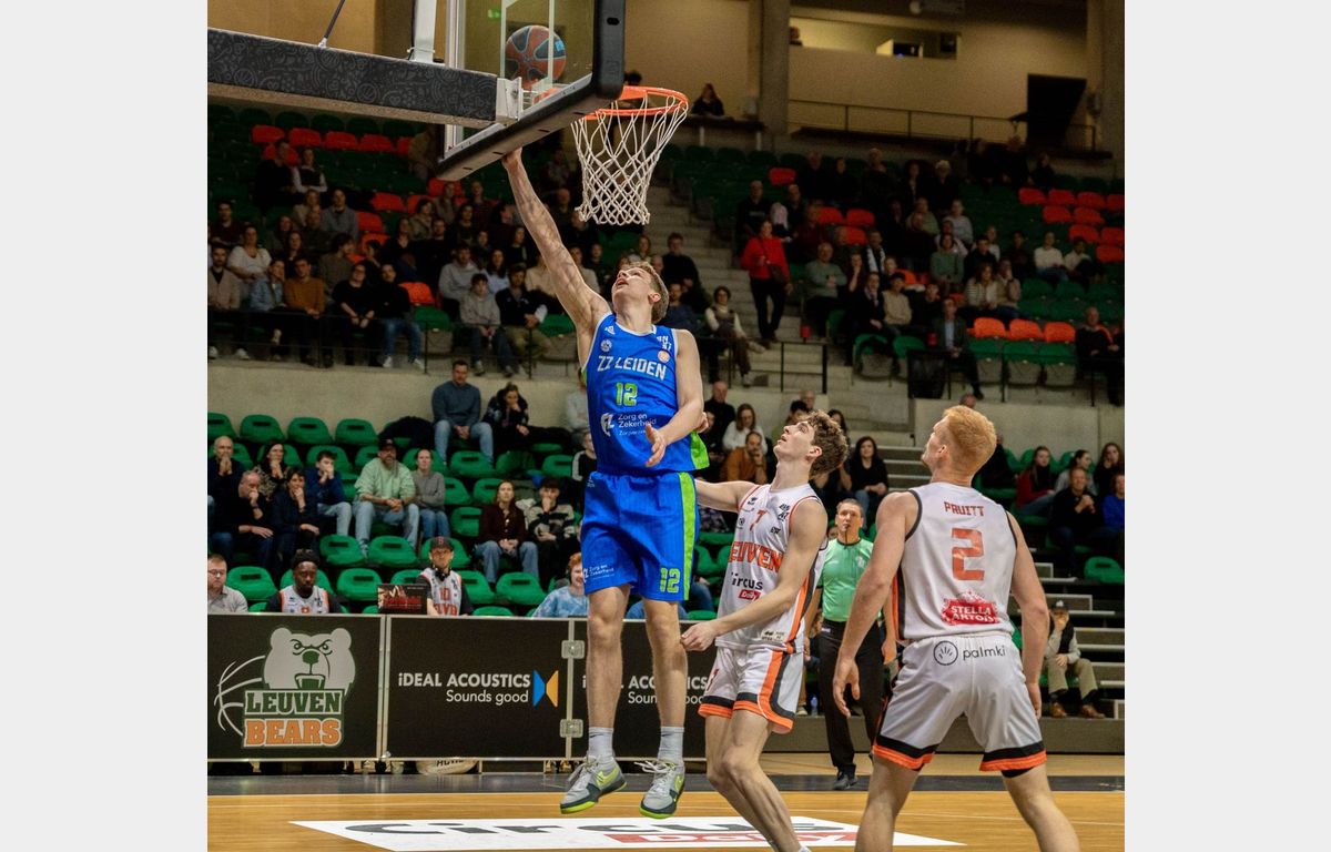 Dat zat er in Leuven echter niet in. Balverlies en zwakke schotpercentages gaven Leuven Bears alle gelegenheid om ZZ Leiden op afstand te houden. Zeker toen Roel Bucumi ook nog een serie driepunters door de ring liet glijden. Zo liep het verschil toch weer op naar 18 punten: 85-67. Jibbe Sicking, die net als Stan van den Elzen, Lucas Kruithof en Sam Huurman bij de laatste 24 is gekozen voor de Orange Lions, pakte in de slotfase nog een paar puntjes mee. Niettemin ging de winst met 90-73 naar de Belgen. ZZ Leiden moet zich snel herstellen, want komende woensdag staat er alweer een thuiswedstrijd tegen Brussels Basketball op het programma.