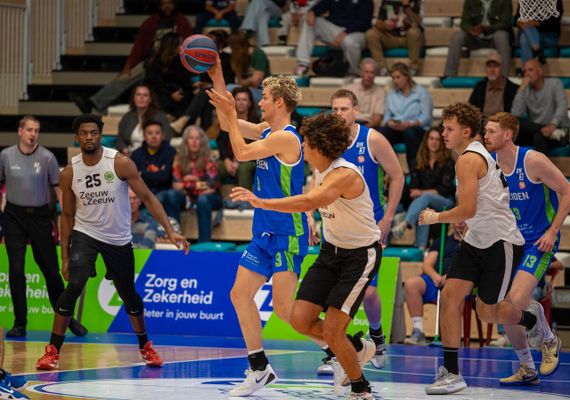 ZZ Leiden werkte af tegen 58,6% en schoot 13 van de 26 driepunters raak. Stan van den Elzen finishte met 30 punten en 6 assists. Javian McCollum sloot af met 25 punten, 5 driepunters, 7 assists en de hoogste efficiency van de avond met 32. Tyreek Scott-Grayson was goed voor 18 punten. Lucas Kruithof tekende voor 16 punten.