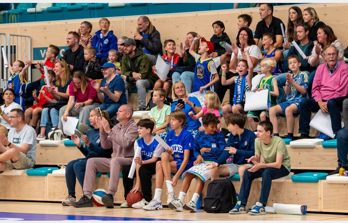 De derde oefenwedstrijd in eigen huis was natuurlijk de uitsmijter van de Open Dag, waarop de jeugd vermaakt werd en voor zover nodig kennismaakte met de basketbalsport en de wetenswaardigheden.
