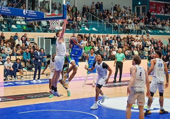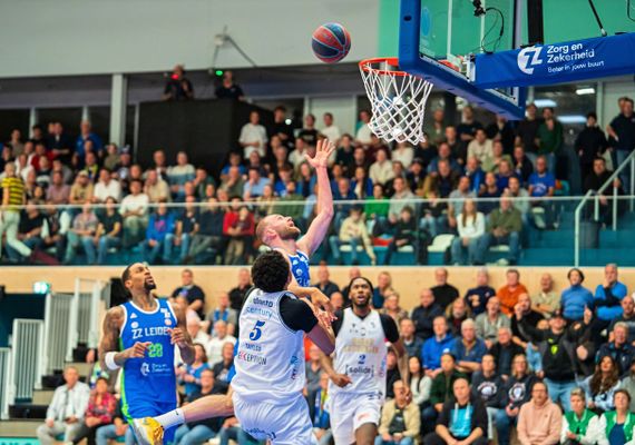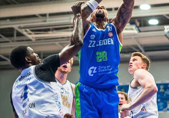 Tyreek Scott-Grayson sloot het duel af met 33 punten, 7 rebounds en een efficiency van 43. Javian McCollum tekende voor 14 punten. Jibbe Sicking was goed voor 13 punten. Stan van den Elzen (5 assists, 6 steals) en Lucas Kruithof kwamen tot 12 punten. ZZ Leiden schoot overigens 26 van de 30 vrije worpen raak en dat is wel eens anders geweest in Leiden.