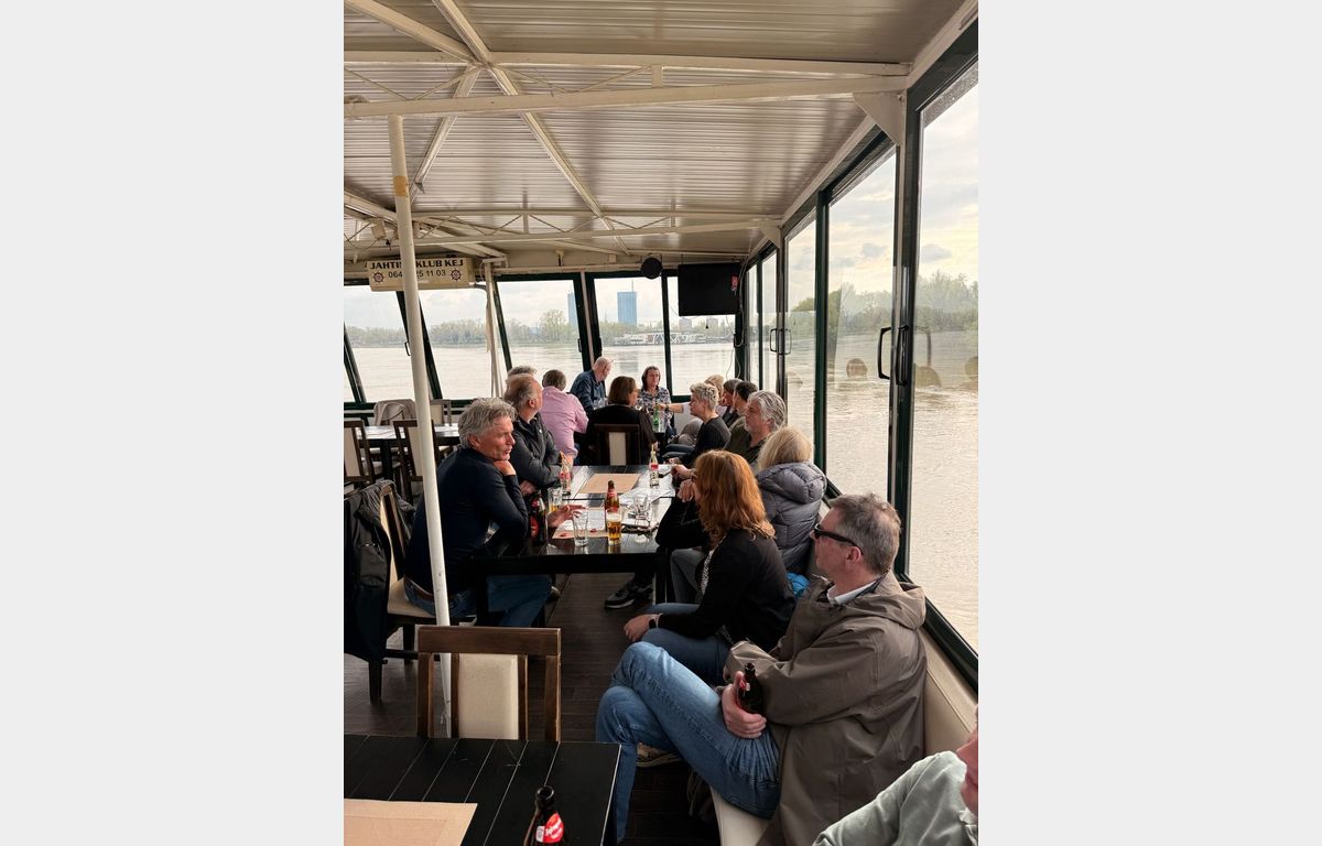 De fietstocht eindigde bij een lokaal restaurant waar de lunch klaarstond: ingelegde kool, aardappelsalade, verse vis – niet altijd even warm, maar met veel couleur locale en met zorg bereid. De meningen over de smaken liepen uiteen, maar de sfeer aan tafel bleef opperbest. Na de lunch konden we direct door voor de boottocht over de Sava. Waar de fietstocht nog tempo had, was dit een moment van rust. De snelheid lag laag, maar het uitzicht en de ontspannen sfeer maakten het tot een mooie afsluiter van de middag. Het werd een ervaring die misschien niet spectaculair was, maar juist daardoor perfect paste in het volle programma.